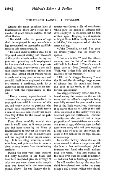 Children's Labor: A Problem, Brown, Emma Elizabeth. Atlantic Monthly, Vol. 46 (November 1880), 6 pages. Posted January 3, 2004. CD (HWDA07). SAMPLE PAGE. File size 2.2 MB PDF