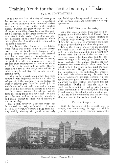 Training Youth for the Textile Industry of Today, Constantine, J. H. The Melliand, Vol. 1, No. 1 (April 1929), 3 pages. Posted October 4, 2002. SAMPLE PAGE. File size 1.2 MB PDF