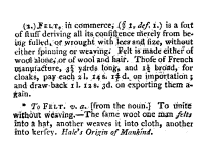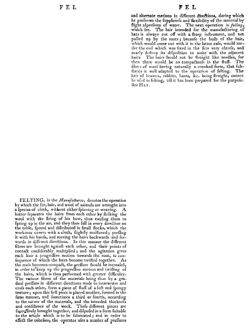 Felt, ---. Encyclopedia Britannica, 1st ed., 1771, 1 page. Posted March 8, 2004. SAMPLE PAGE. File size 400 KB PDF