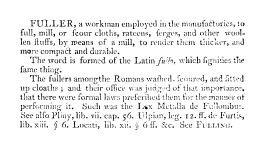 Fulling, ---. Encyclopedia Britannica, 1st ed., 1771, 1 page. Posted March 8, 2004. SAMPLE PAGE. File size 408 KB PDF