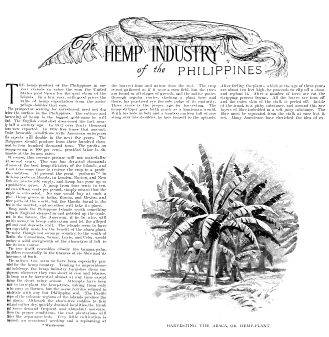 Hemp Industry of the Philippines, Wildman, Edwin. Harper's Weekly, Vol. 44 (1900), 2 pages. Posted September 10, 2003. CD (HWDA09). SAMPLE PAGE. File size 1 MB PDF