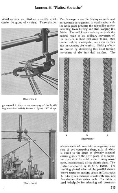 Plaited Soutache, Jannsen, H. The Melliand, Vol. 1, No. 5 (August 1929), 5 pages. Posted January 17, 2002. SAMPLE PAGE. File size 1.5 MB PDF