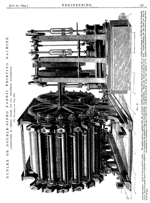 Duplex or Double-Sided Fabric Printing Machine, ---. Engineering Weekly, July 27, 1894, 1 page. Posted August 11, 2003. CD (HWDA09). SAMPLE PAGE. File size 356 KB PDF