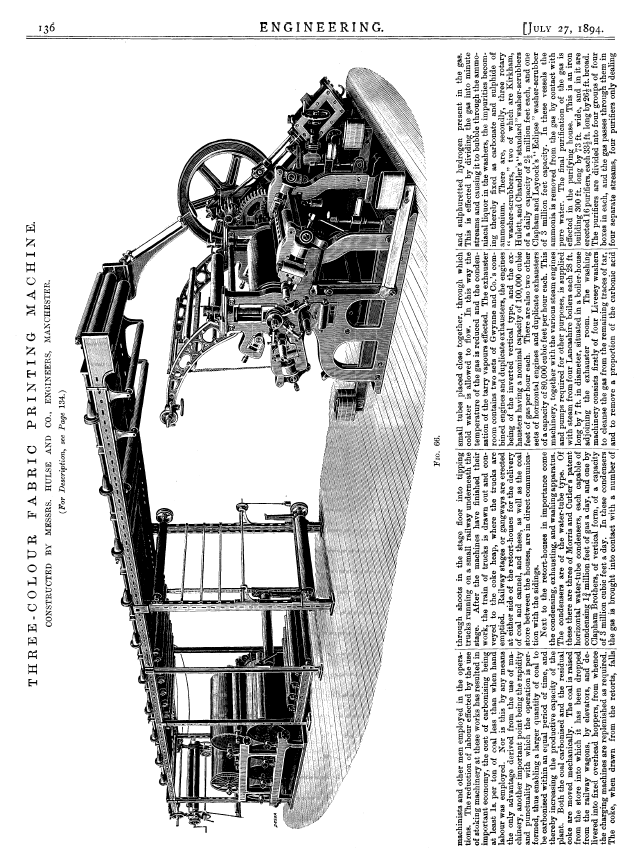 Three-Colour Fabric Printing Machine, ---. Engineering Weekly, July 27, 1894, 1 page. Posted August 11, 2003. CD (HWDA09). SAMPLE PAGE. File size 292 KB PDF