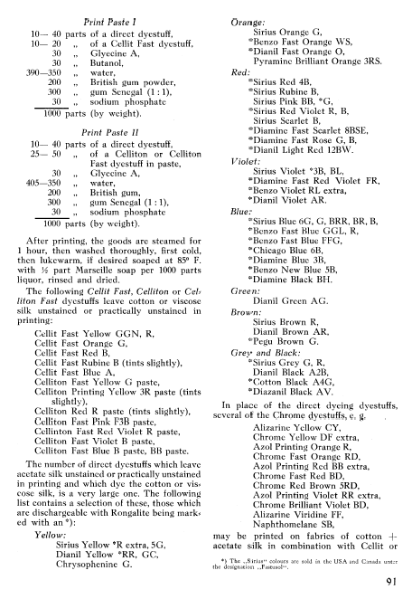 Printing of Acetate Silk and Fabrics Containing Acetate Silk, Gmelin and Kerth. The Melliand (specimen), 1929, 6 pages. Posted July 5, 2003. SAMPLE PAGE. File size 904 KB PDF