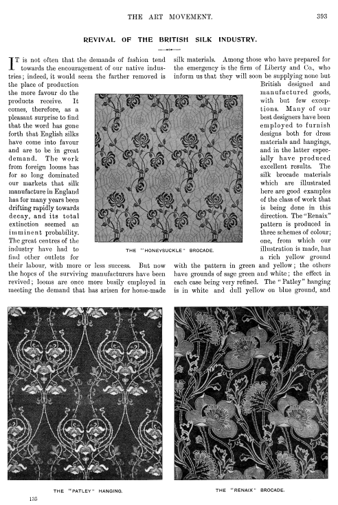 Revival of the British Silk Industry, ---. Magazine of Art, 1898, 2 pages. Posted June 19, 2004. CD (HWDA10). SAMPLE PAGE. File size 704 KB PDF