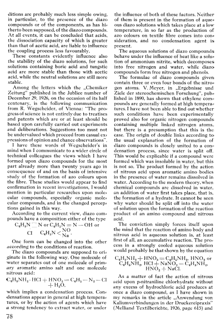 Stable Diazo Printing Colors and a New Explanation of the Constitution of Diazo Compounds, Sieber, W. The Melliand (specimen), 1929, 5 pages. Posted July 6, 2003. SAMPLE PAGE. File size 824 KB PDF