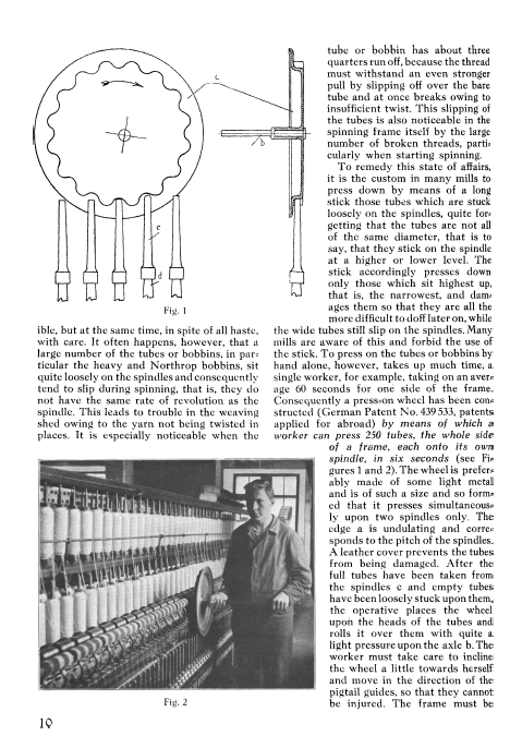A Rapid Method of Doffing or Changing Bobbins on Spinning or Doubling Frames, Toenniessne, E. The Melliand (specimen), 1929, 4 pages. Posted July 6, 2003. SAMPLE PAGE. File size 704 KB PDF