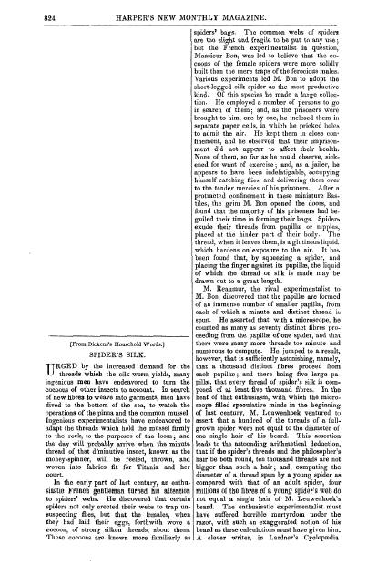 Spider's Silk, ---. Harper's New Monthly Magazine, Vol. 1, 2 pages. Posted November 3, 2004. CD (HWDA11). SAMPLE PAGE. File size 792 KB PDF