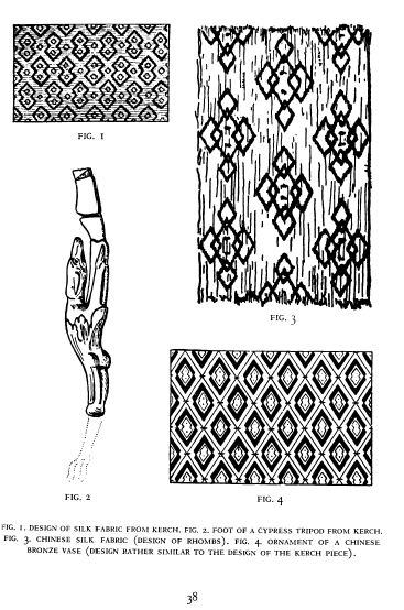 Notes on Chinese Silk Found in the South of Russia, Toll, N. P. The Bulletin of the Needle and Bobbin Club, Vol. 34 (1950), 10 pages. Posted January 9, 2004. SAMPLE PAGE. File size 1 MB PDF