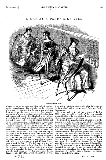 Smiles, Samuel. "John Lombe: Introducer of the Silk Industry into England" in Men of Invention and Industry, John Murray, 1884, 14 pages. Posted June 10, 2003. SAMPLE PAGE. File size 1 MB PDF