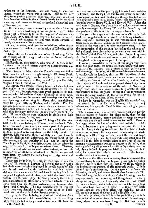 Silk, ---. Encyclopaedia Perthensis, 1803, 11 pages. Posted July 8, 2003. SAMPLE PAGE. File size 1.6 MB PDF