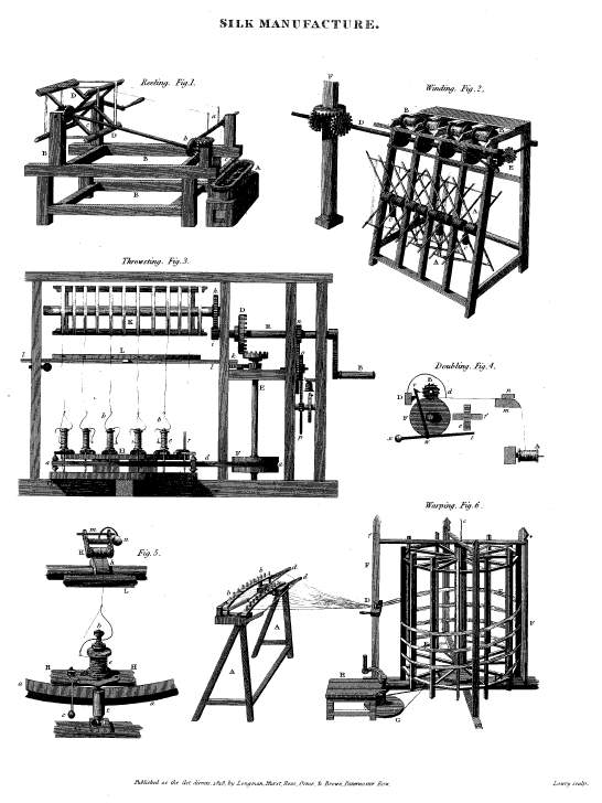 Silk Twisting and Reeling, ---. Knight's American Mechanical Dictionary, 1876, 1 page. Posted September 11, 2003. SAMPLE PAGE. File size 408 KB PDF