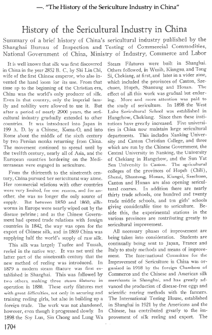 ---. Workshop in the Shihmein County Filature Processes Silk Produced Locally, China Pictorial, 1975, No. 5, 1 page. Posted September 22, 2003. SAMPLE PAGE. File size 604 KB PDF