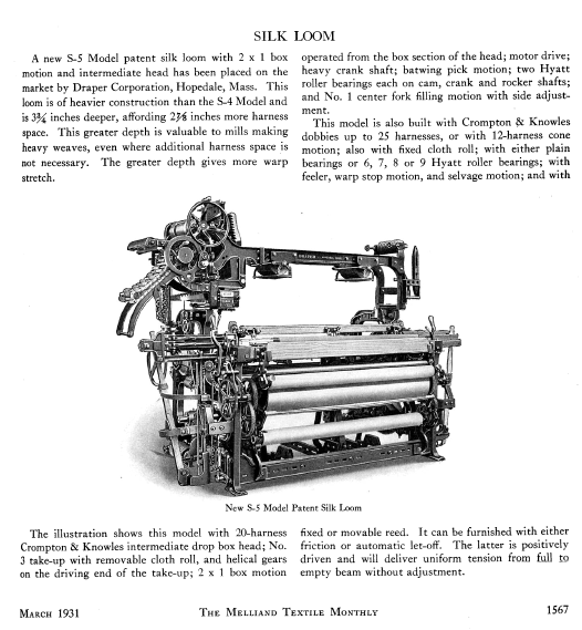 ---. Silk Throwing, Part 5 (Monograph 5002E), International Textbook Co., 1924, 59 pages. Note: Scanned images provided by Tess Parrish. Copyright not renewed. Posted August 11, 2006. SAMPLE PAGE. File size 2.9 MB PDF