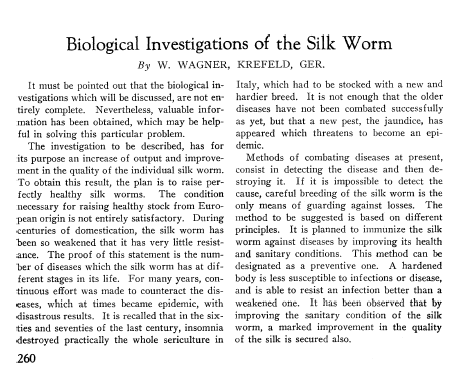 Wild Silk -- An American Possibility, Aaron, S. F. Collier's, Vol. 44 (1909), 1 page. Posted September 23, 2003. CD (HWDA09). SAMPLE PAGE. File size 552 KB PDF