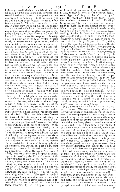 Tapestry, ---. Encyclopaedia Perthensis, 1803, 3 pages. Posted June 24, 2003. SAMPLE PAGE. File size 608KB PDF