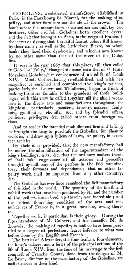 Gobelin, ---. Encyclopedia Britannica, 11th ed., 1911, 1 page. Posted February 4, 2004. SAMPLE PAGE. File size 440 KB PDF