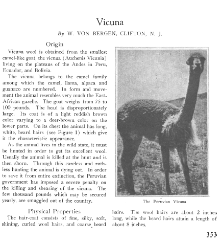 Vicuna, Bergen, Werner von. The Melliand, Vol. 2, No. 3 (June 1930), 5 pages. Posted October 4, 2002. SAMPLE PAGE. File size 1.4 MB PDF