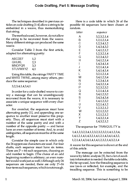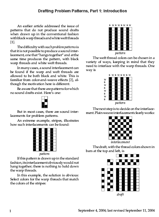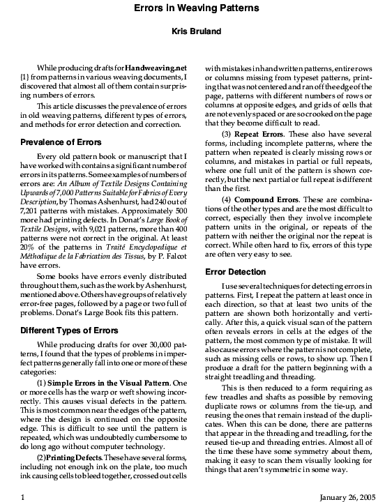 Bruland, Kris. Errors in Weaving Patterns, 5 pages. Posted February 1, 2005. FIRST PAGE. File size 636 KB PDF