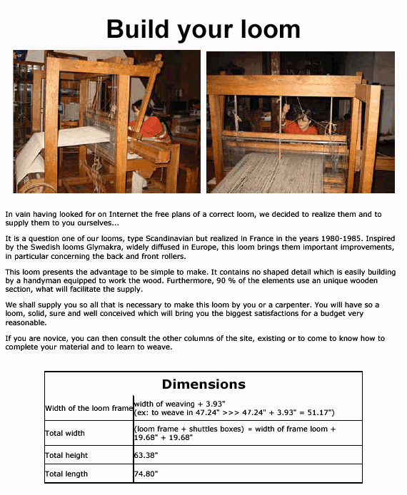 Demoule, Philippe. Build Your Loom, 11 pages. Posted December 25, 2002. FIRST PAGE. File size 548 KB PDF