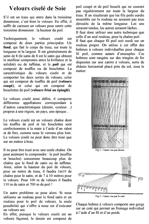 Demoule, Philippe. Velours ciselé de Soie [Cut Silk Velvet], 3 pages. Posted April 23, 2002. FIRST PAGE. File size 452 KB PDF