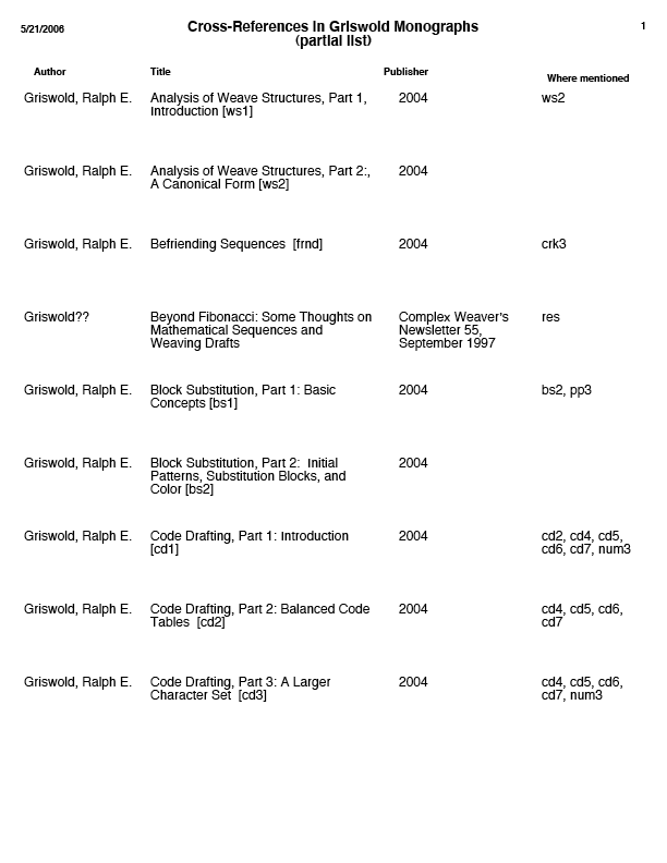 Gladstone, Carla X . Cross-References in Griswold Monographs, 13 pages. Posted May 22, 2006. FIRST PAGE. File size 92 KB PDF