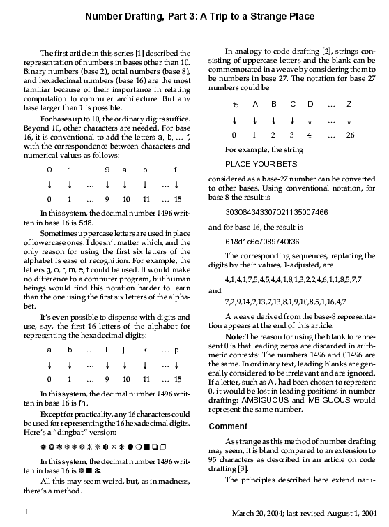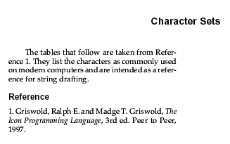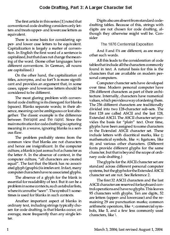 Griswold, Ralph E. Code Drafting: Part 3 -- A Larger Character Set, 5 pages. Note: Last revised August 1, 2004. Posted August 4, 2004. FIRST PAGE. File size 444 KB PDF