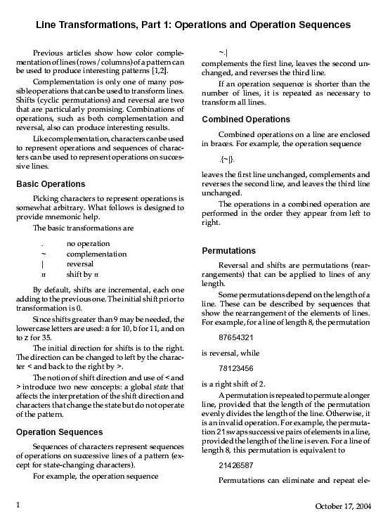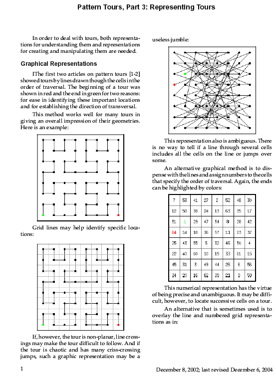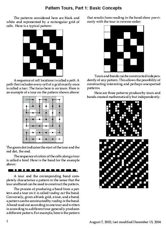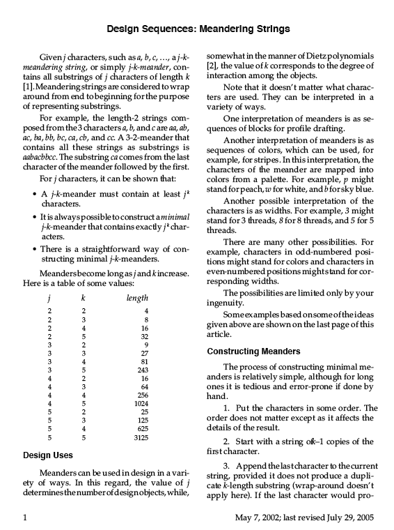 Griswold, Ralph E. Design Sequences: Meandering Strings, 3 pages. Note: Last updated July 29. 2005. Posted August 5, 2005. FIRST PAGE. File size 444 KB PDF