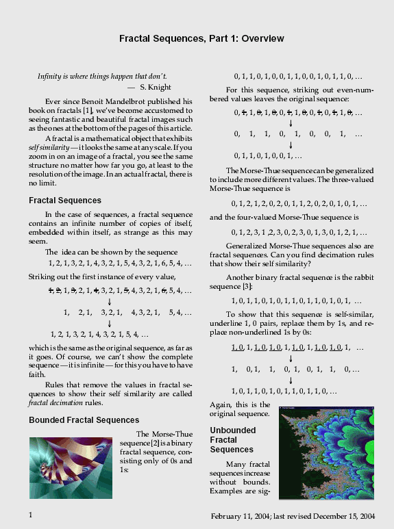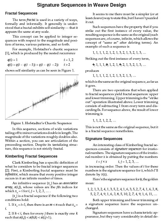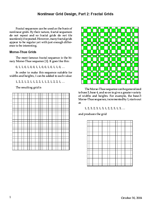 Griswold, Ralph E. Designing with Fractal Sequences, 4 pages. Note: Last revised December 15, 2004. Posted December 15, 2004. FIRST PAGE. File size 524 KB PDF