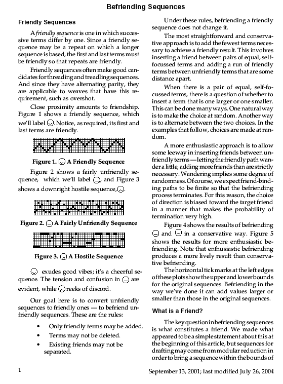 Griswold, Ralph E. Befriending Sequences, 6 pages. Note: Last revised July 26, 2004. Posted August 4, 2004. FIRST PAGE. File size 568 KB PDF
