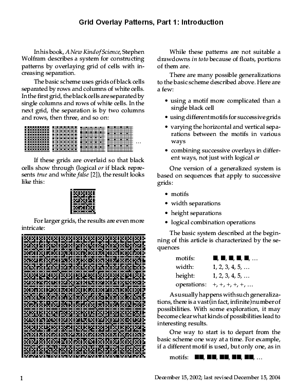 Griswold, Ralph E. Grid Overlay Patterns, Part 1: Introduction, 2 pages. Note: Last revised December 15, 2004. Posted December 15, 2004. FIRST PAGE. File size 464 KB PDF