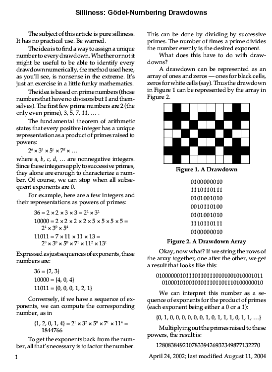 Griswold, Ralph E. Code Drafting, Part 7: Crackle, 2 pages. Note: Last modifier August 1, 2004. Posted ugust 4, 2004. FIRST PAGE. File size 444 KB PDF