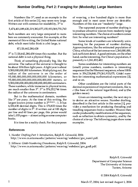 Griswold, Ralph E. From Drawdown to Draft -- A Programmer's View, 9 pages. Note: Last revised September 15, 2004. Posted September 15, 2004. FIRST PAGE. File size 488 KB PDF