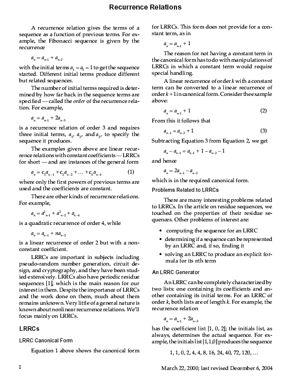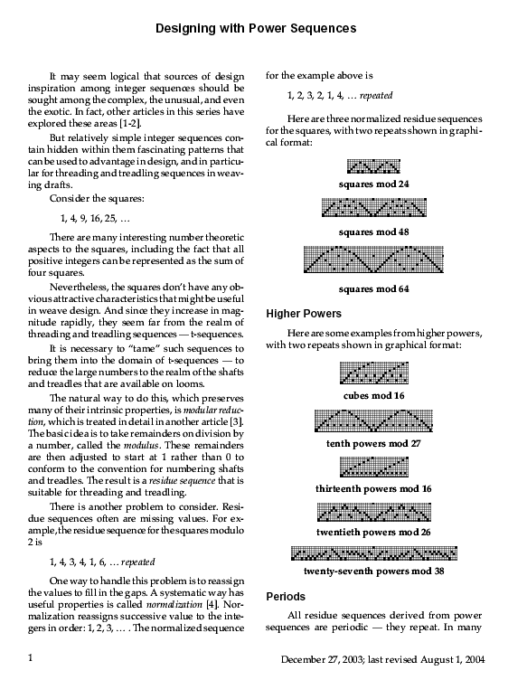 Griswold, Ralph E. Designing with Power Sequences, 29 pages. Note: Last revised August 1, 2004. Posted August 20, 2004. FIRST PAGE. File size 748 KB PDF