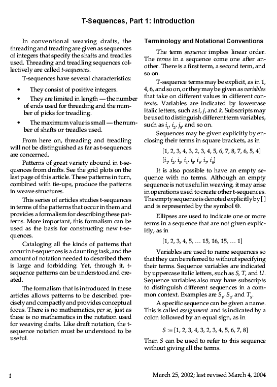Griswold, Ralph E. Analysis of Weave Structures, Part 1, 5 pages. Note: Last revised August 1, 2004. Posted August 20, 2004. FIRST PAGE. File size 456 KB PDF