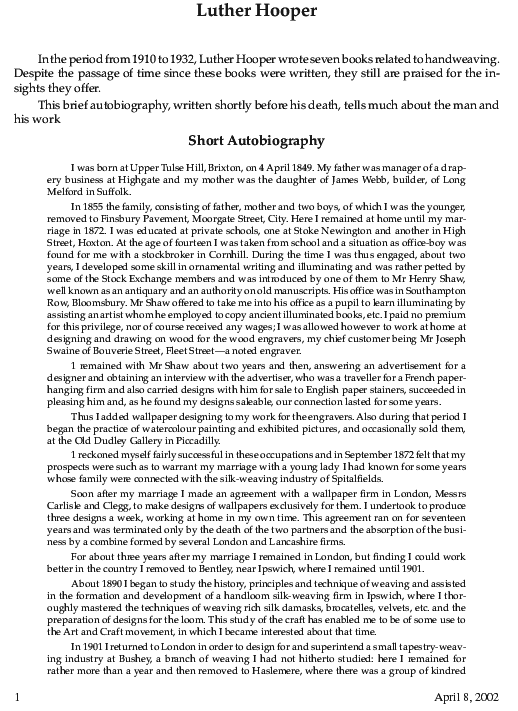 Griswold, Ralph E. International Correspondence Schools; Publications on Weaving and Textile Manufacture, 27 pages. Note: Last modified August 4, 2006. Posted August 5, 2006. FIRST PAGE. File size 1.8 MB PDF