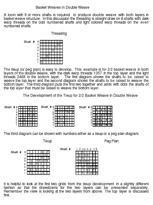 O'Connor, Paul R. Double Weave Workshop Notes: Basket Weaves in Double Weave, 6 pages. Posted February 4, 2000. FIRST PAGE. File size 51 KB PDF