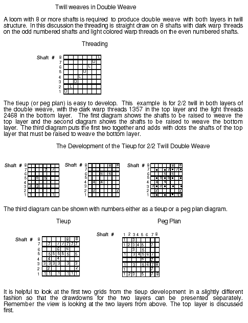 O'Connor, Paul R. Double Weave Workshop Notes: Twill Weaves in Double Weave, 7 pages. Posted February 4, 2000. FIRST PAGE. File size 45 KB PDF