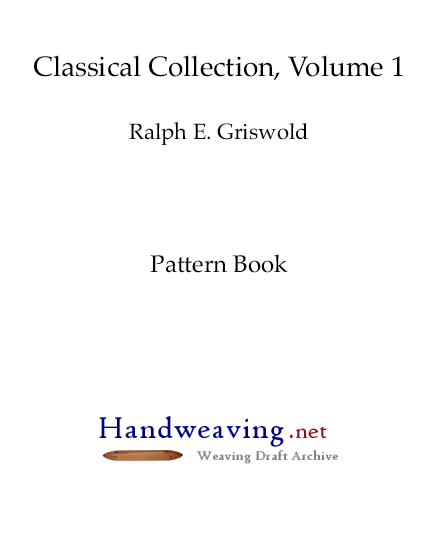 Griswold, Ralph E. Classical Collection, Volume 1, 55 pages. Note: Pattern book. WIFs of the patterns in this document are available at handweaving.net. Posted February 1, 2005. FIRST PAGE. File size 1.5 MB PDF