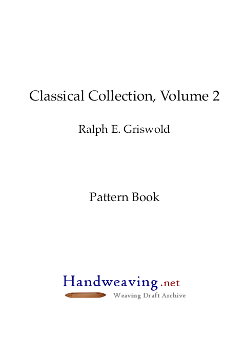 Griswold, Ralph E. Classical Collection, Volume 2, 79 pages. Note: Pattern book. WIFs of the patterns in this document are available at handweaving.net. Posted February 1, 2005. FIRST PAGE. File size 1.9 MB PDF