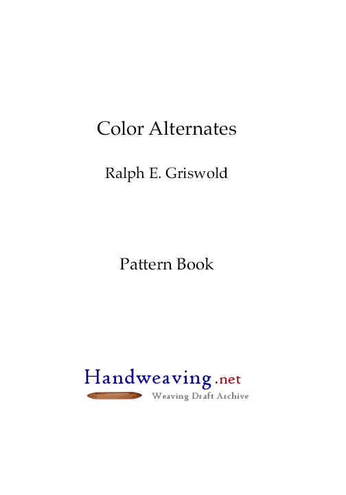 Griswold, Ralph E. Color Alternates, 16 pages. Note: Pattern book. WIFs of the patterns in this document are available at handweaving.net. Posted February 1, 2005. FIRST PAGE. File size 1.3 MB PDF