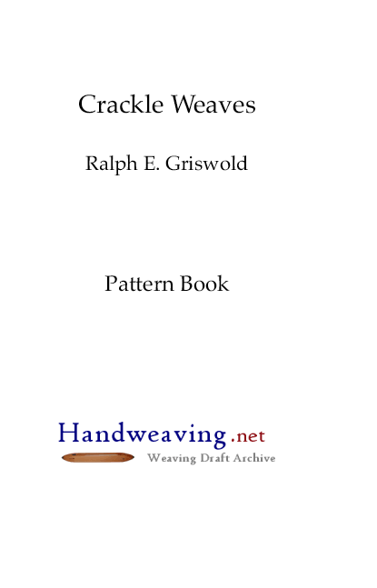 Griswold, Ralph E. Crackle Weaves, 90 pages. Note: Pattern book. WIFs of the patterns in this document are available at handweaving.net. Posted June 8, 2004. FIRST PAGE. File size 3 MB PDF