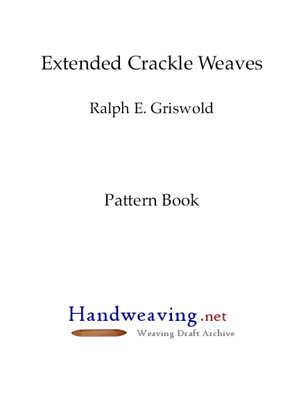 Griswold, Ralph E. Extended Crackle Weaves, 75 pages. Note: Pattern book. WIFs of the patterns in this document are available at handweaving.net. Posted April 27, 2005. FIRST PAGE. File size 1.4 MB PDF