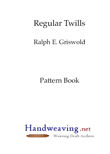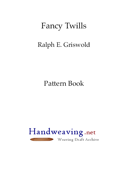 Griswold, Ralph E. Fancy Twills, 92 pages. Note: Pattern book. WIFs of the patterns in this document are available at handweaving.net. Posted August 20, 2004. FIRST PAGE. File size 1.6 MB PDF
