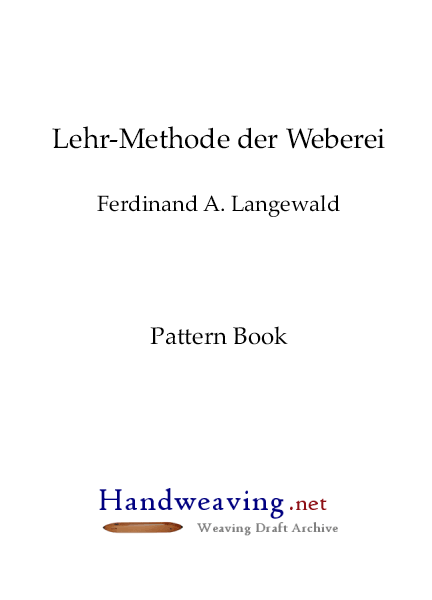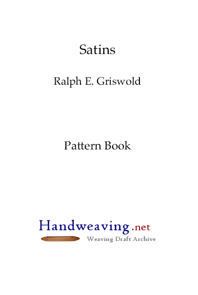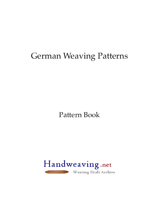 Griswold, Ralph E. German Weaving Patterns, 27 pages. Note: Pattern book. WIFs of the patterns in this document are available at handweaving.net. Posted February 1, 2005. FIRST PAGE. File size 1 MB PDF