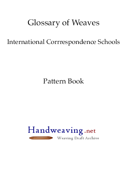 Griswold, Ralph E. Glossary of Weaves, 10 pages. Note: Pattern book. Last revised August 24, 2004. WIFs of the patterns in this document are available at handweaving.net. Posted August 24, 2004. FIRST PAGE. File size 868 KB PDF