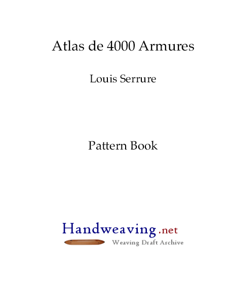 Griswold, Ralph E. Atlas de 4000 Armures by Louis Serrure, 154 pages. Note: Pattern book. WIFs of the patterns in this document are available at handweaving.net. Posted February 1, 2005. FIRST PAGE. File size 2 MB PDF