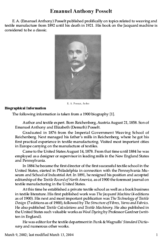 Griswold, Ralph E. Emanuel Anthony Posselt, 15 pages. Note: Updated March 13, 2004. Posted March 13, 2004. FIRST PAGE. File size 1 MB PDF