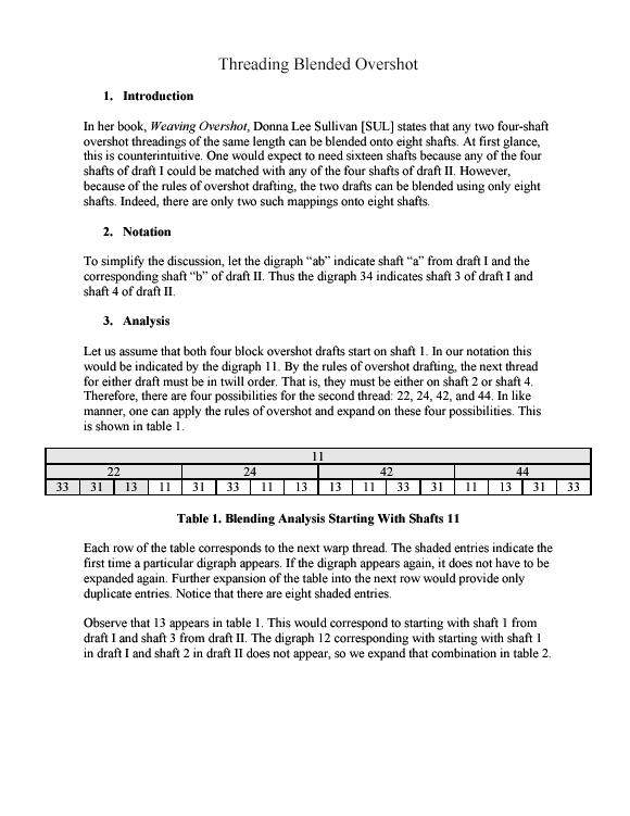 Wentink, Allan. Threading Blended Overshot, 3 pages. Posted January 4, 2005. FIRST PAGE. File size 76 KB PDF